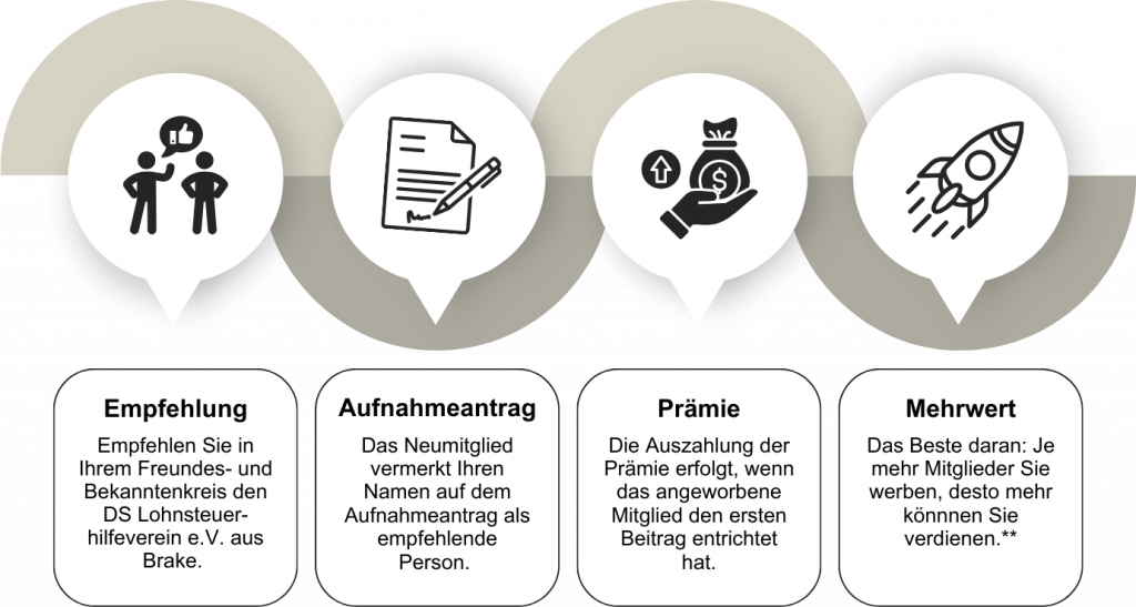 Werden Sie Teil unserer starken Gemeinschaft und profitieren Sie von den Vorteilen einer Mitgliedschaft im DS Lohnsteuerhilfeverein e.V. in Brake! Ob selbst Mitglied zu werden oder neue Mitglieder an zu werben – hier erfahren Sie, wie einfach es ist, Teil unseres Netzwerks zu werden.